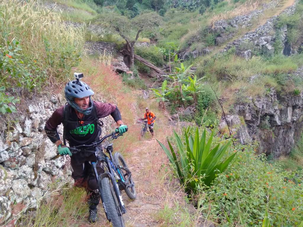 L‘île de Santo Antão est déjà un « paradis de la randonnée et du trail pédestre » grâce à ses innombrables sentiers parcourant la montagne, de villages en hameaux. Leur excellente qualité (sections pavées, terre, roche, scories volcaniques) se traduit pour les VTTistes par un terrain de jeu incroyable et diversifié (confirmés avec la visite des meilleurs bikers mondiaux) accessible pour le simple pratiquant, jusqu’à la pratique « expert radical ». Cabo Verde MTB Tours Adventure pourra vous conseiller des parcours adaptés à votre niveau, dans de somptueux paysages, ainsi que ses descentes très longues (D-1200 est très commun pour de nombreux trails).