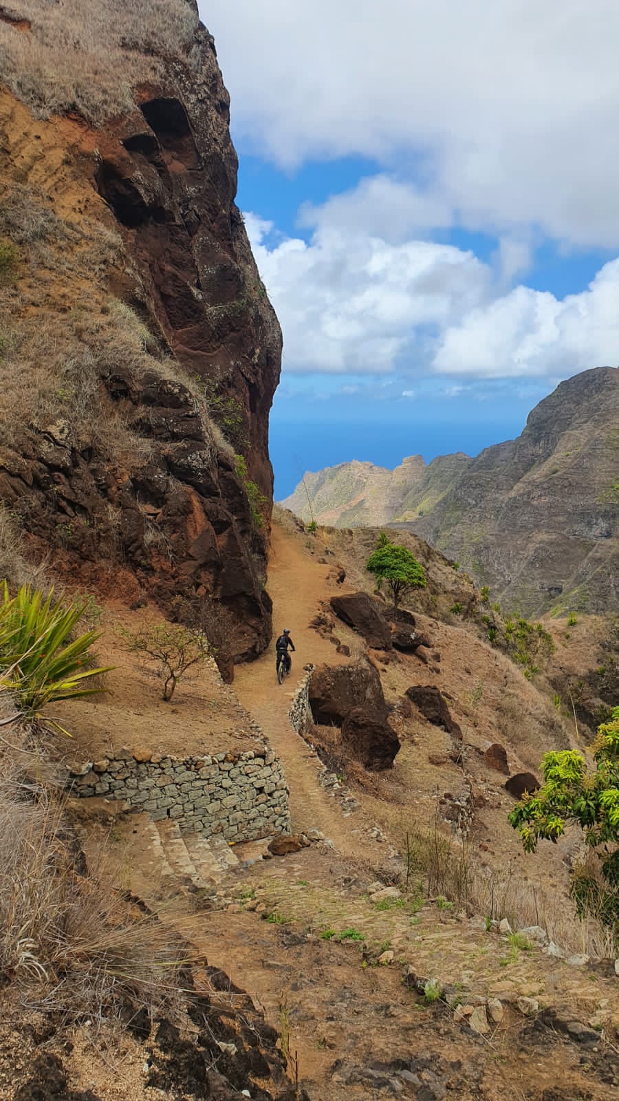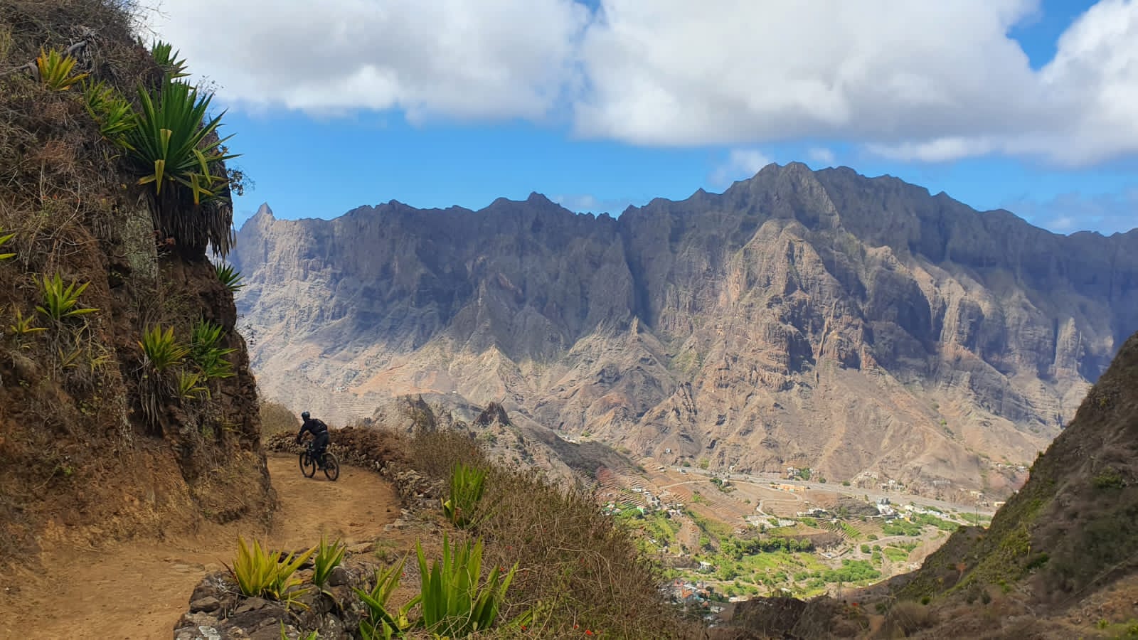L‘île de Santo Antão est déjà un « paradis de la randonnée et du trail pédestre » grâce à ses innombrables sentiers parcourant la montagne, de villages en hameaux. Leur excellente qualité (sections pavées, terre, roche, scories volcaniques) se traduit pour les VTTistes par un terrain de jeu incroyable et diversifié (confirmés avec la visite des meilleurs bikers mondiaux) accessible pour le simple pratiquant, jusqu’à la pratique « expert radical ». Cabo Verde MTB Tours Adventure pourra vous conseiller des parcours adaptés à votre niveau, dans de somptueux paysages, ainsi que ses descentes très longues (D-1200 est très commun pour de nombreux trails).